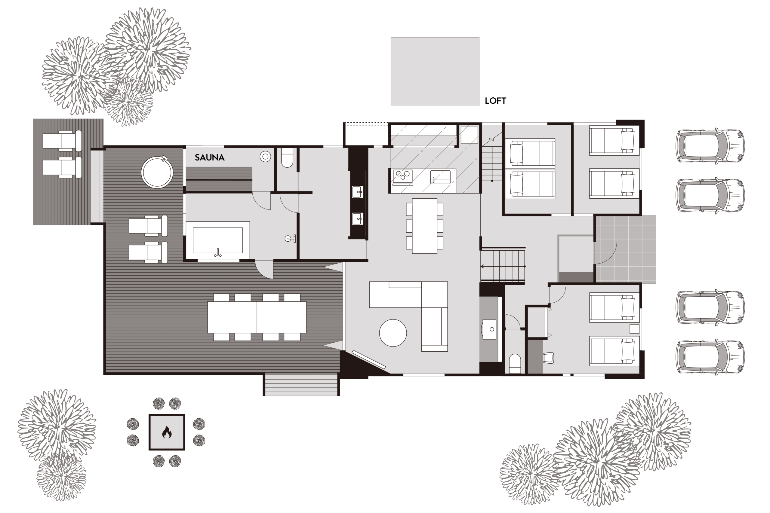 3LDK+ロフトの贅沢な造りで、最大12名様までゆったりとお寛ぎいただけます。