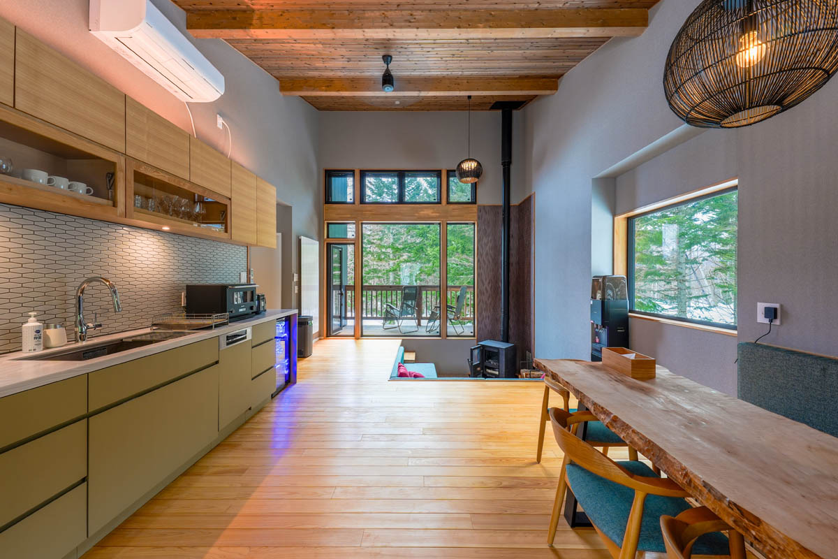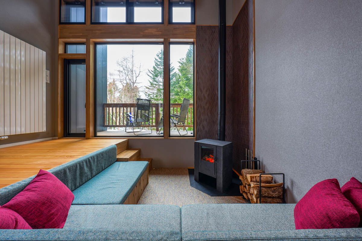 二重断熱と三重ガラスで冷気を遮断し、薪ストーブ+パネルヒーターで均一な温度帯を実現します。