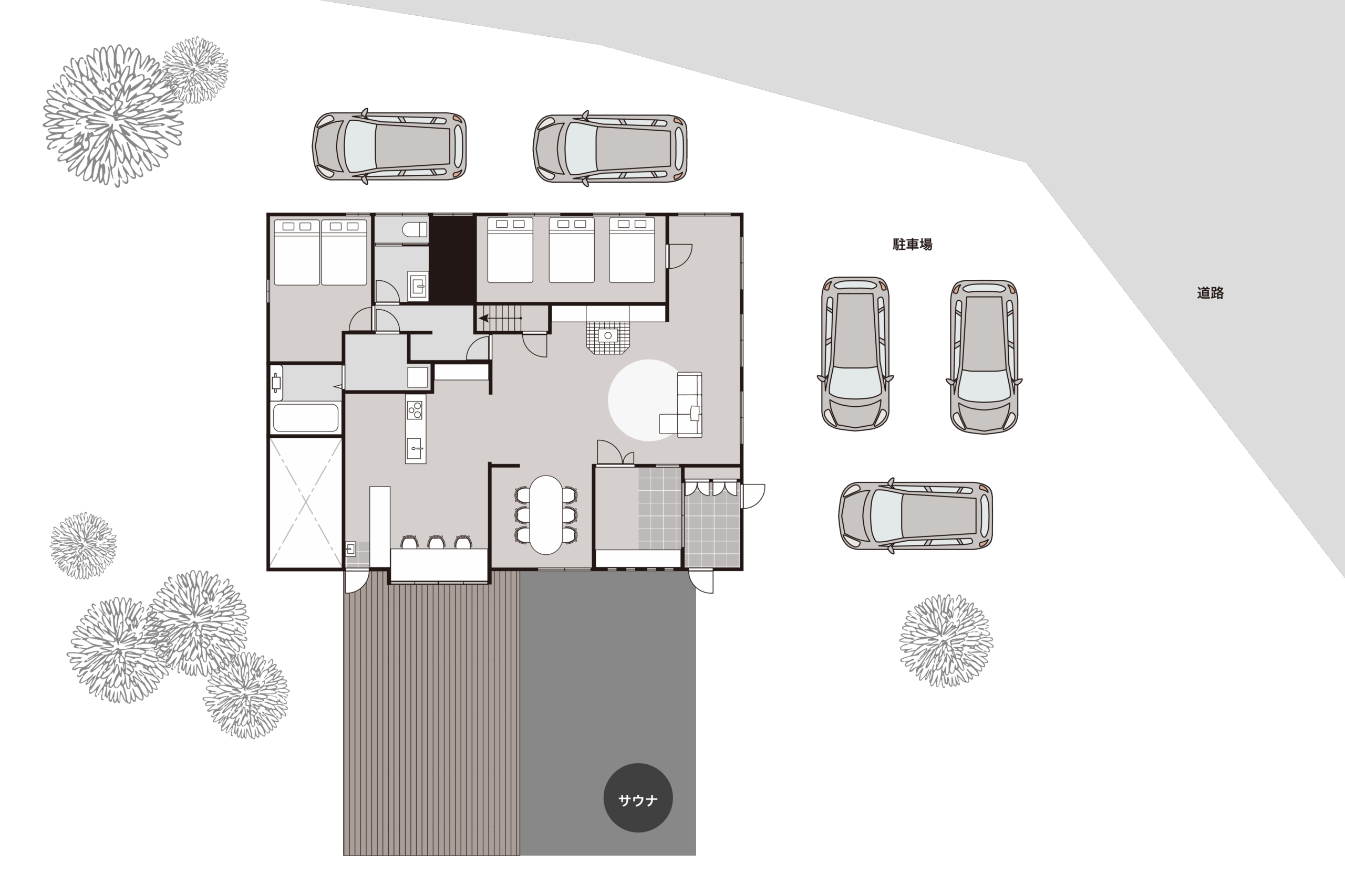 木々が広がるガーデンには、プライベートサウナを設置。