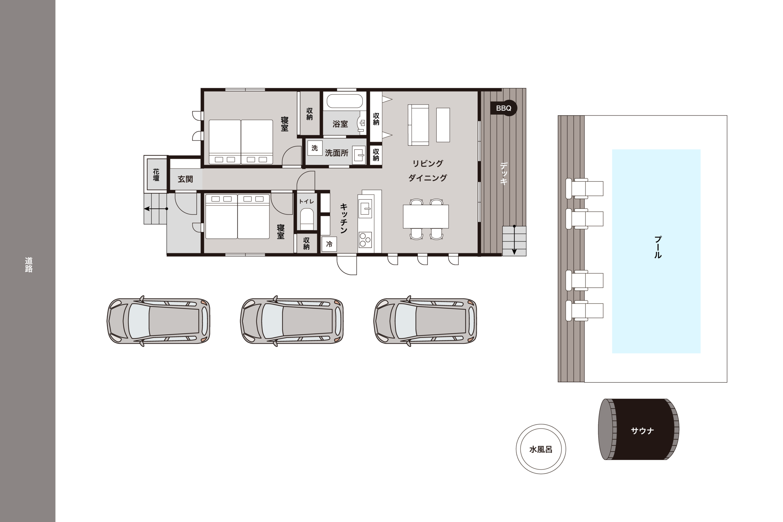 一棟貸し×サウナ×プールという限られた供給の中で、明確な差別化要素として機能します。