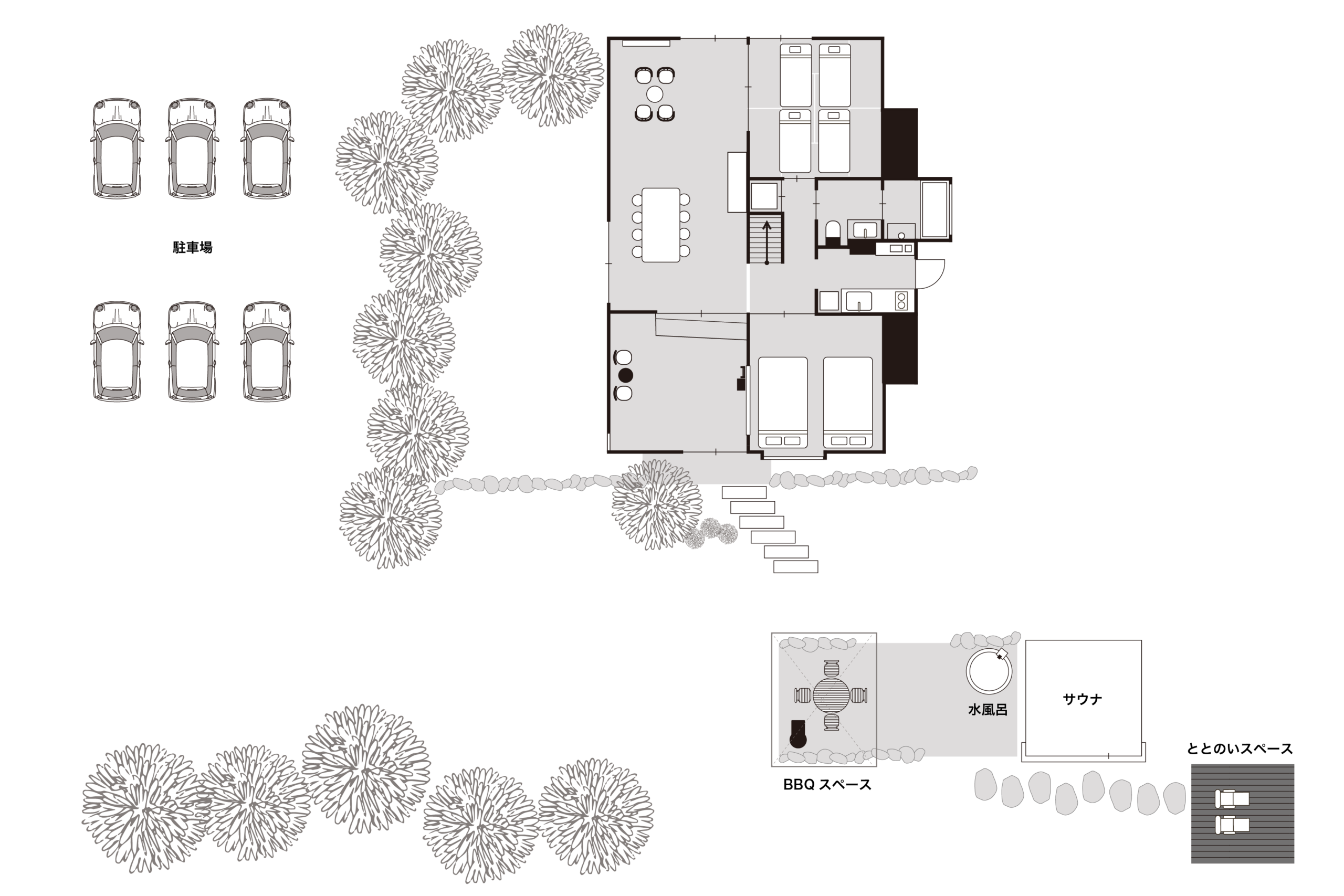 1,100坪の広大な敷地で森林浴を楽しみながら、本格的なサウナで心身をリフレッシュ。