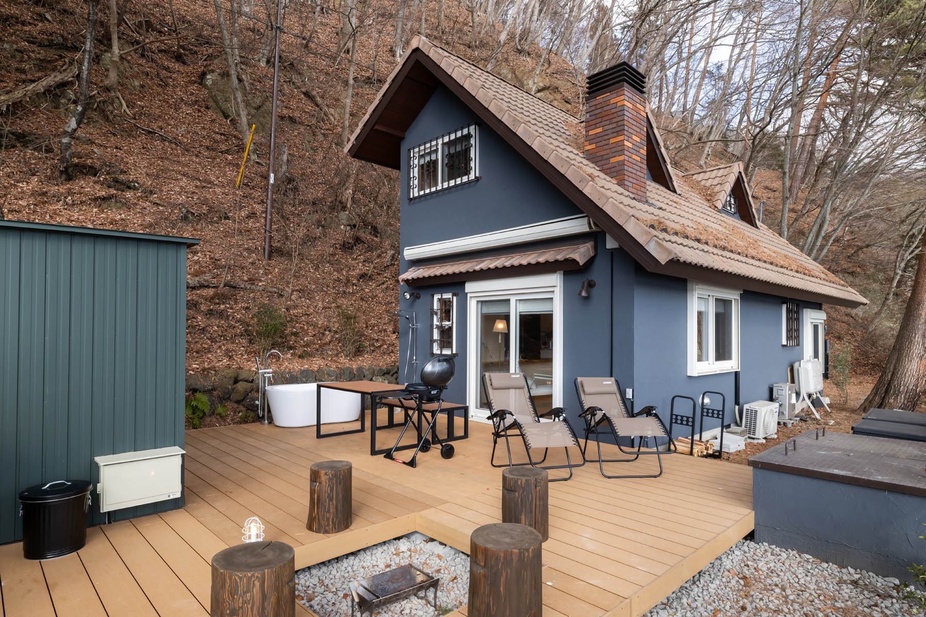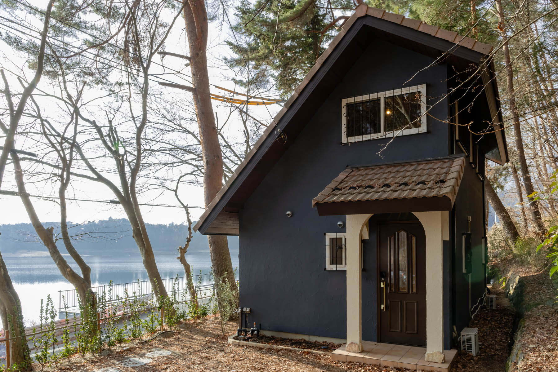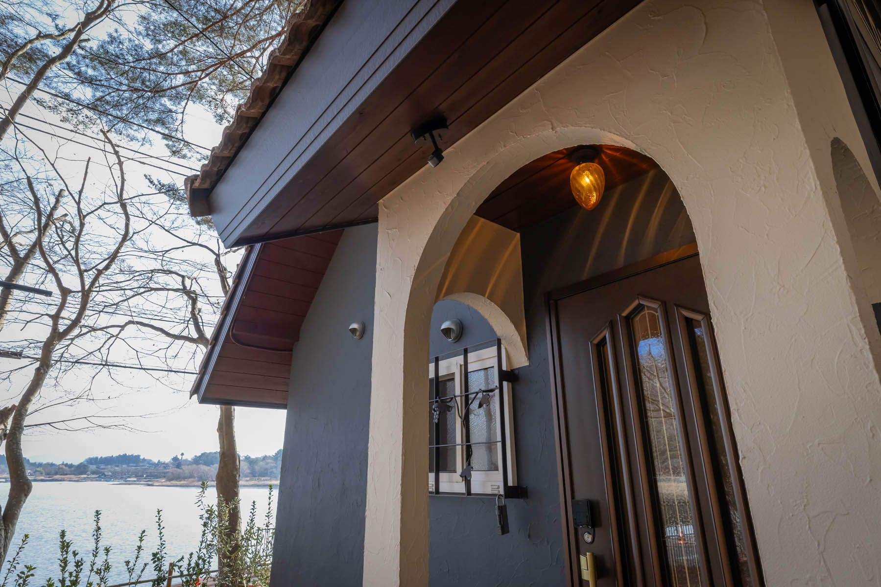 東京駅から車で約1時間40分、河口湖・大石の湖畔道路沿いに佇むヴィラ。
