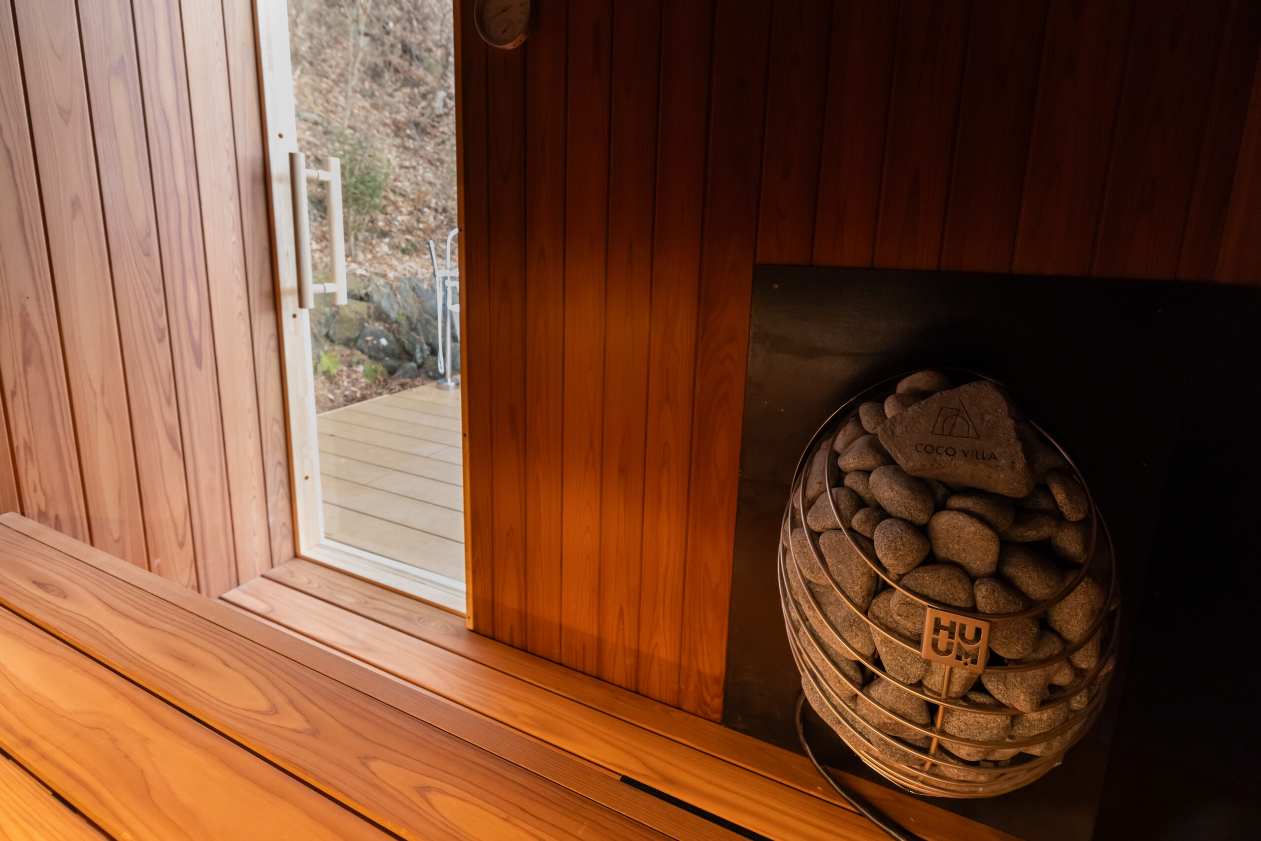 サウナストーブはエストニア発HUUMの電気ヒーターを採用。