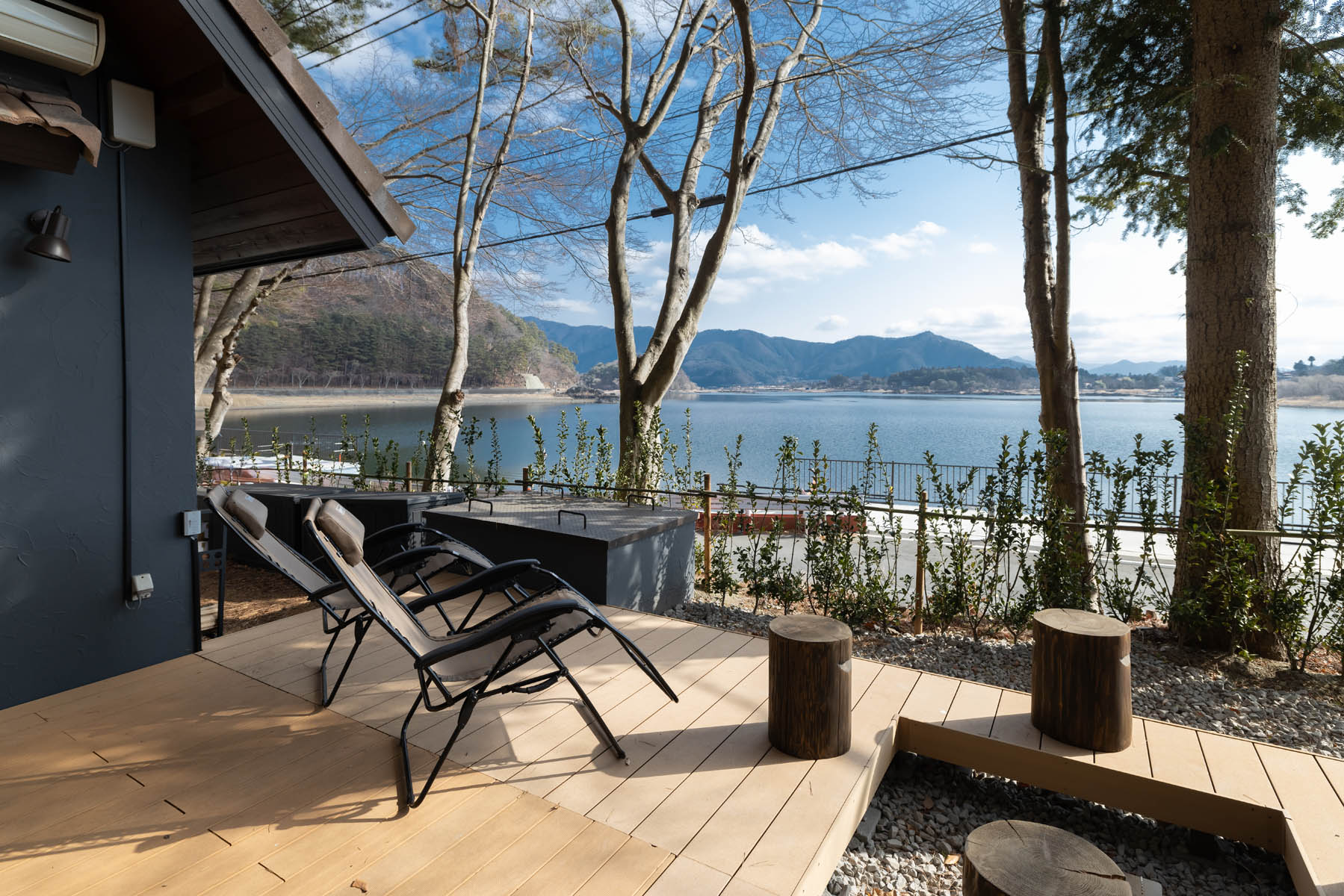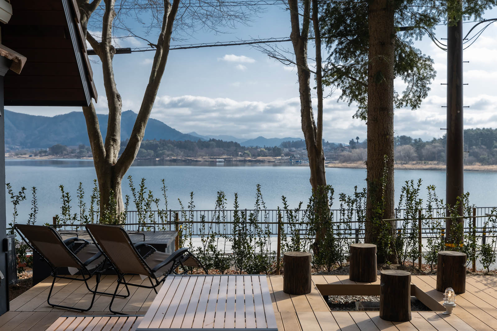 デッキでは湖面のきらめきと風の音、遠景の富士がクールダウンを仕上げます。