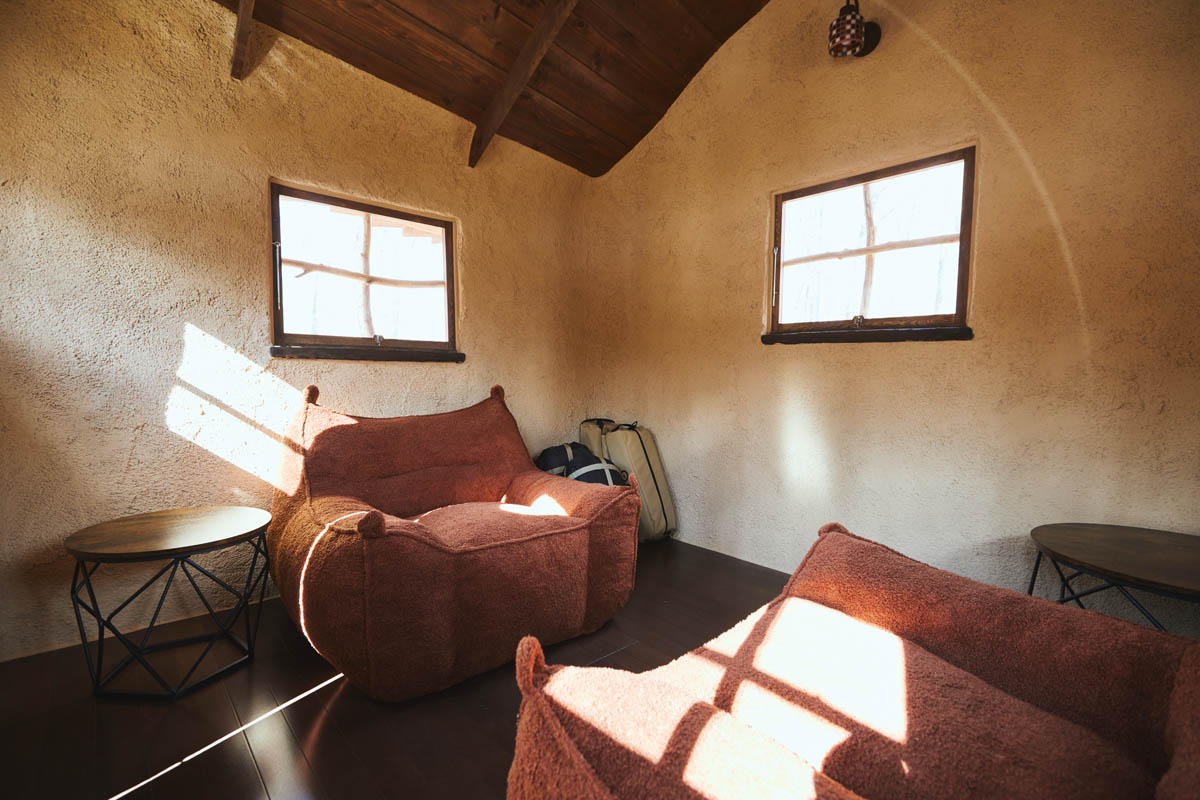 敷地内には遊び心溢れるツリーハウスときのこ型テーブル・チェア・ライト、BBQや焚き火スペースを完備し、お子様も大人もワクワクさせてくれます。