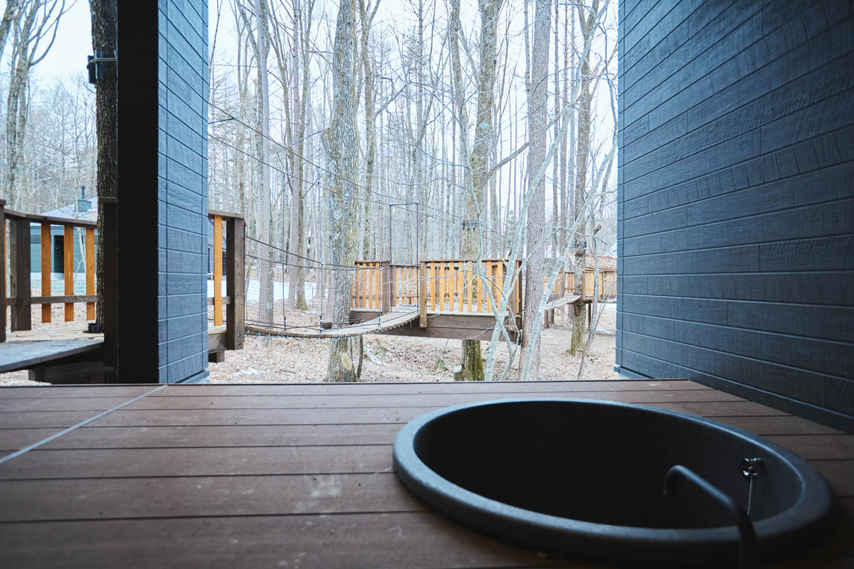 ツリーハウスは、大自然と一体となる冒険心を満たし、子どもから大人まで心踊るスペースを提供。