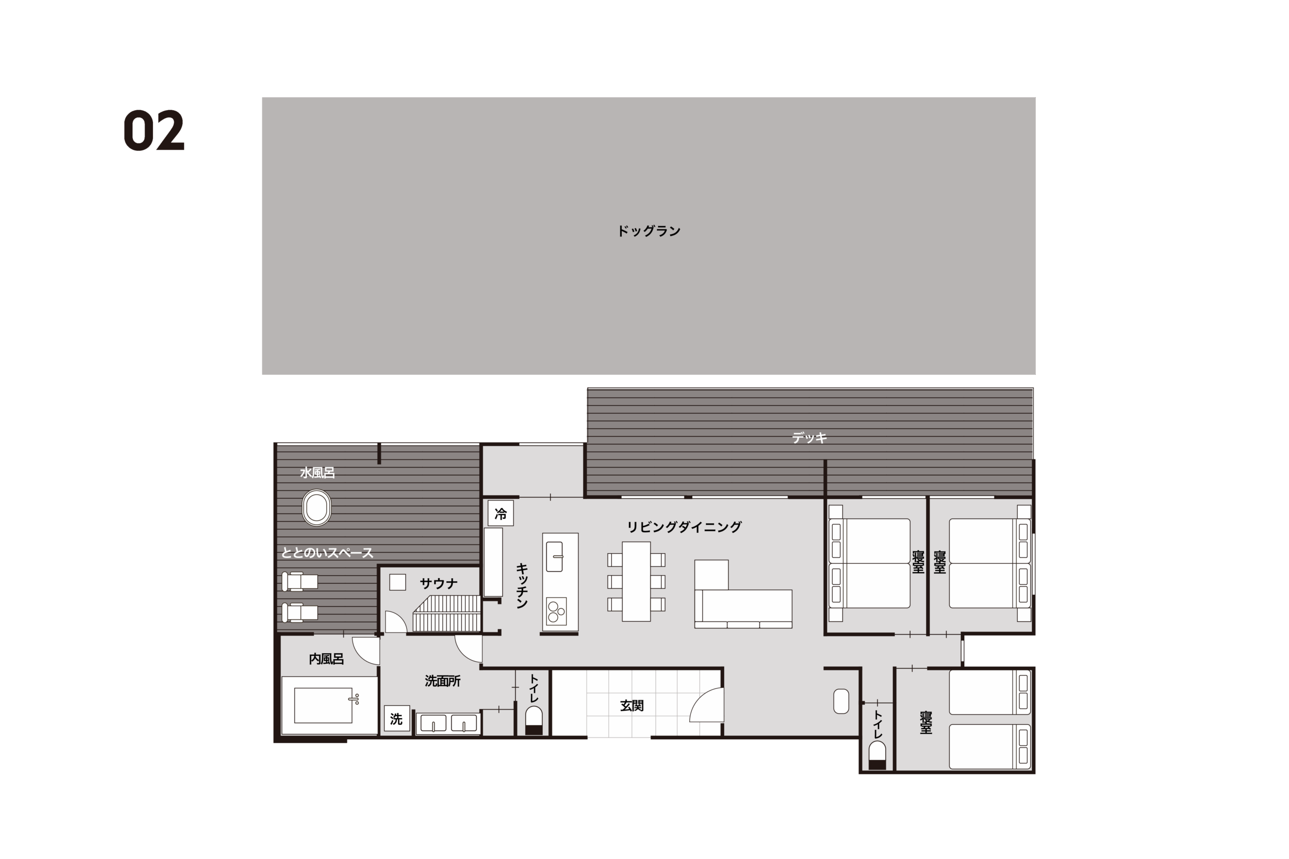 1棟目は愛犬家のための専用ドッグラン付き、2棟目はツリーハウス付きの遊び心がある別邸。