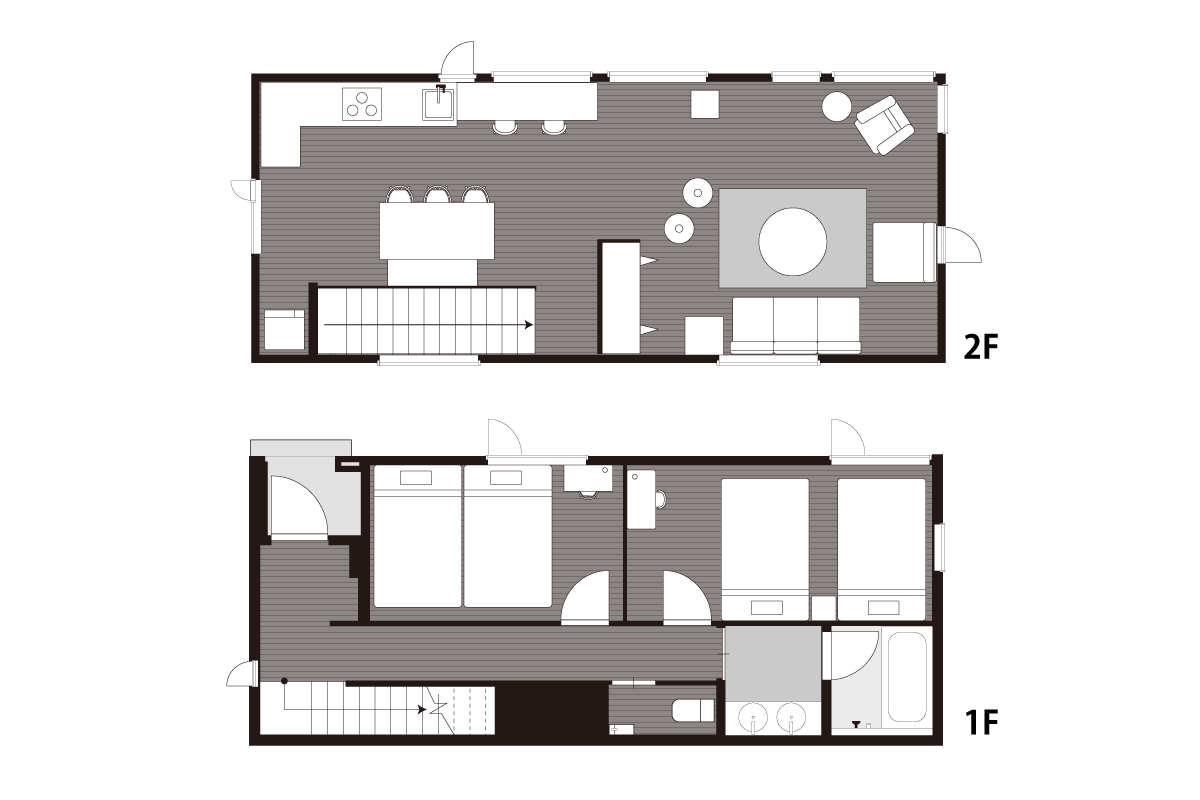 最大8名宿泊可能(※予定)であり、駐車場2〜4台、寝室2部屋と広々とした2階LDKなので、ゆったりと過ごせます。