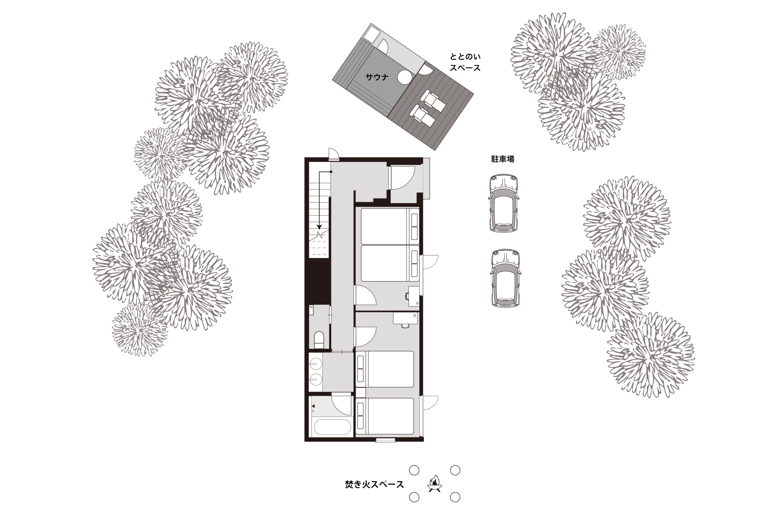 プライベートヴィラの一角で、木の香りと熱に包まれながら、自分だけの“ととのい時間”をじっくり味わえます。