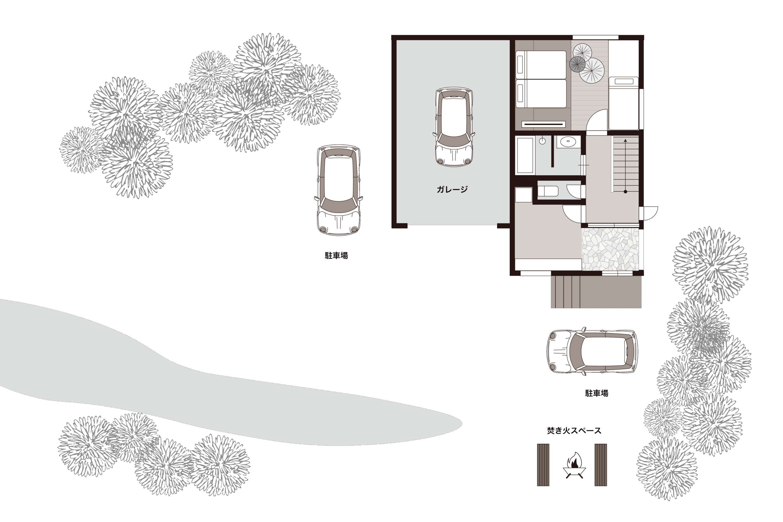 駐車:最大3台(ガレージ:1台、VILLA前:2台)