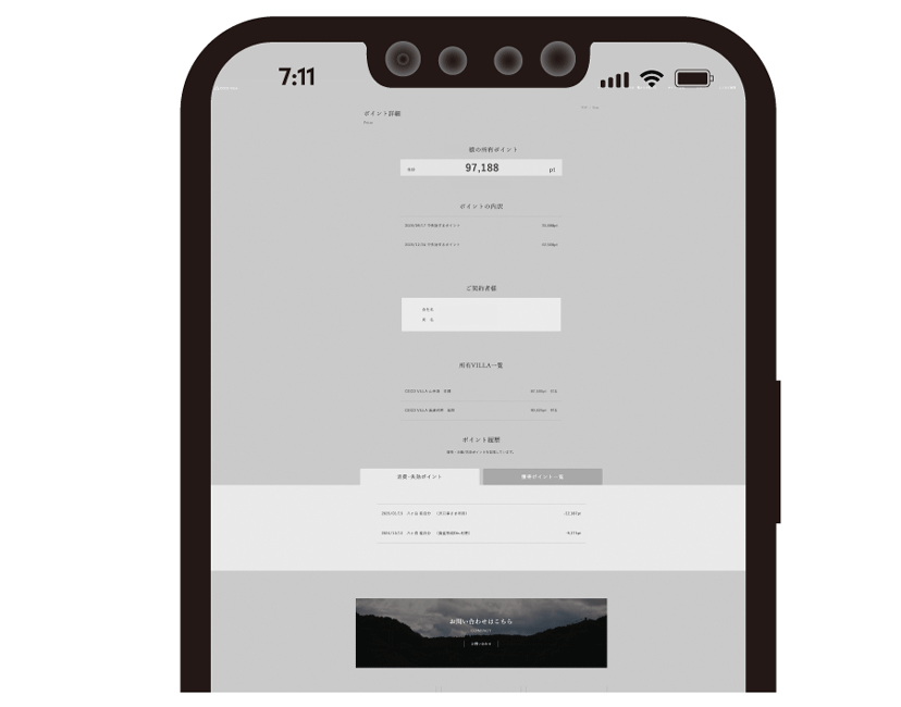 専用ページからはポイントの確認だけでなく、お好きなVILLAの宿泊予約もできます。
