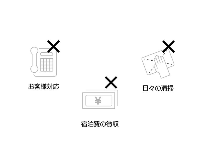 また、宿泊時のお客様対応のオペレーションもCOCO VILLAで行うため、オーナーが対応することはありません。